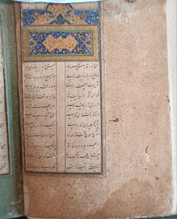 The oldest, and the only elaborate manuscript of the collections is MS Or. 469, a 965/1657-8 copy of the Shāh u Darvīsh (also known as Shāh u Gadā/Gidā), the allegorical ‘love’ story by Hilālī Jughatāʾī Astarābādī (d.936/1529). It has one illustration and is embellished with polychrome illuminations and decorations.